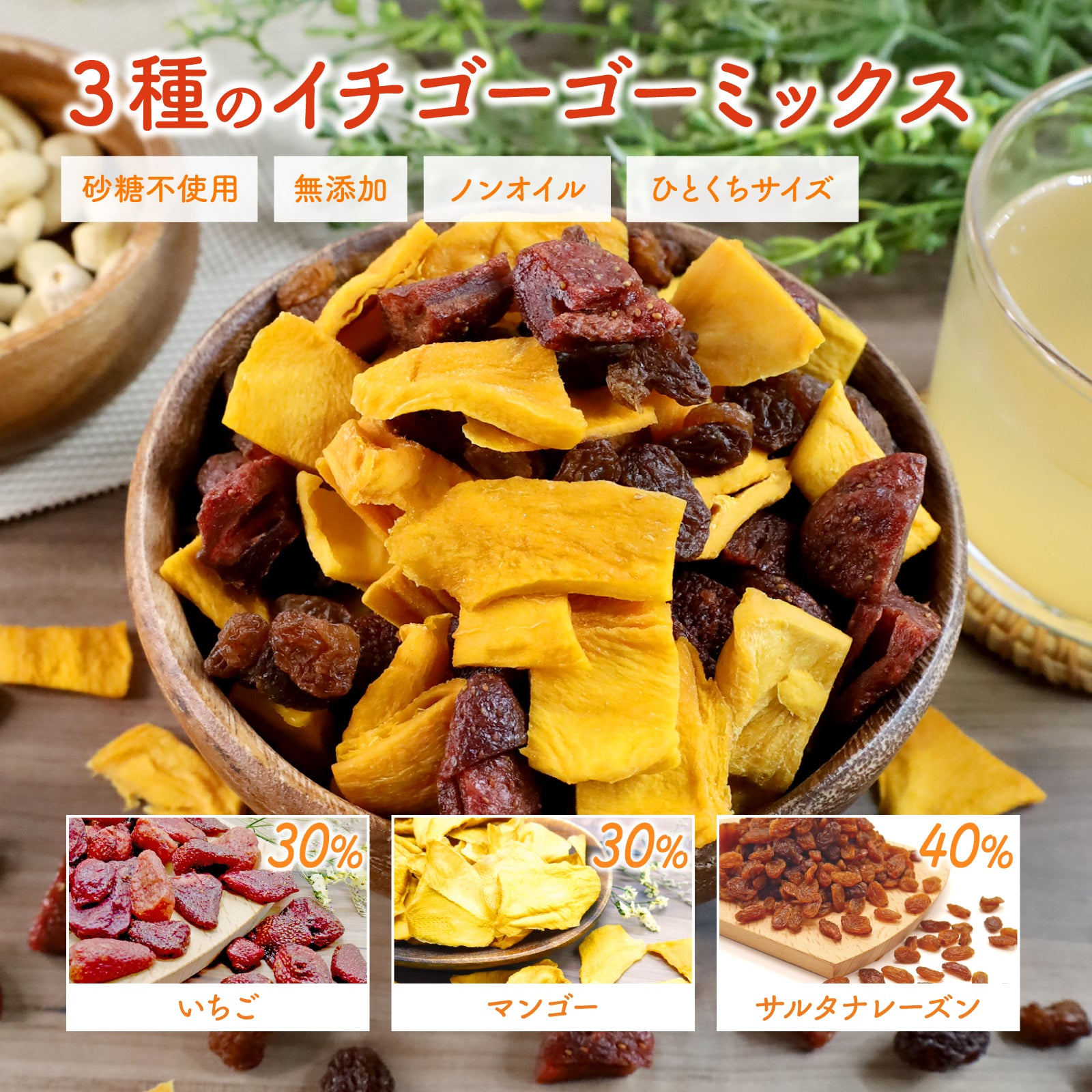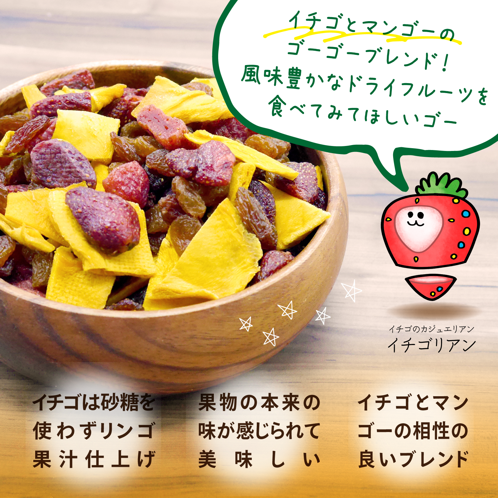 | 原産国 | トルコ(サルタナレーズン)、イチゴ(セルビア)、カンボジア(マンゴー) |