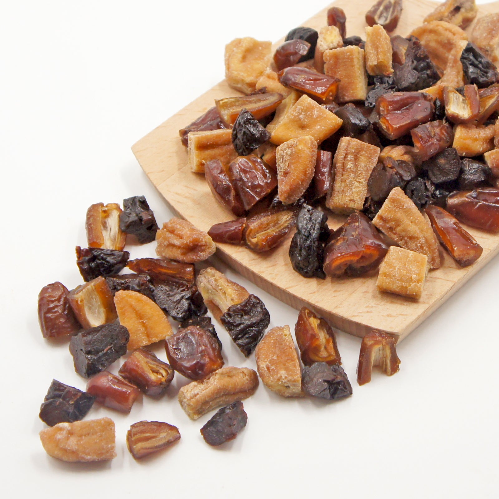 すべて砂糖不使用、無添加のドライフルーツのみでミックスしています。3種類の果物それぞれの個性が混ざり合い、なめらかな甘味が口の中に広がります。